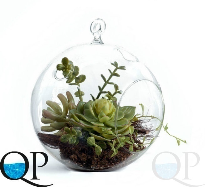 Мини-садик с суккулентами в стеклянной сфере, 14 см