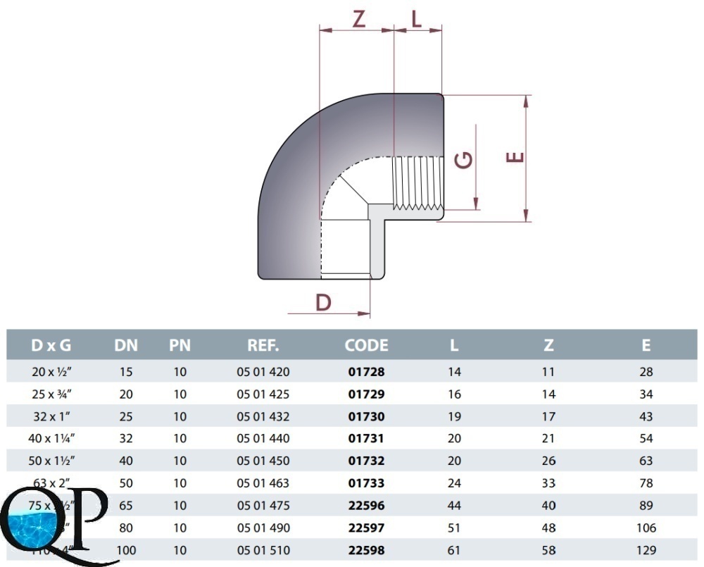 Отвод 90º ПВХ CEPEX (клеевой-внутр. резьба BSP) dxG 32 x 1 ", PN10