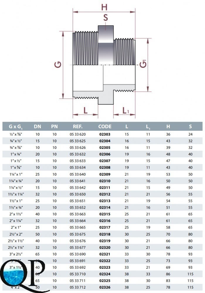 Ниппель редукционный ПВХ CEPEX (нар.резьба BSP- нар. резьба BSP) GxG1 2" x 1½", PN10