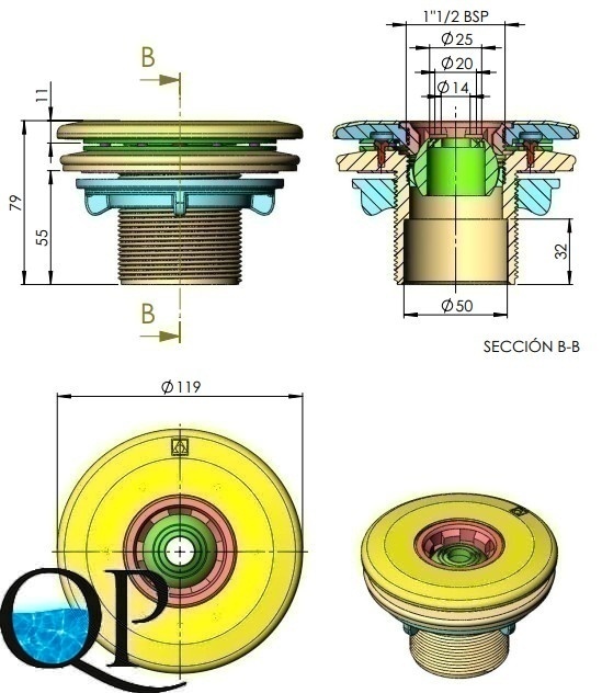 Форсунка впускная применяется в бассейнах, облицованных пленкой. В комплектации форсунки, изготовленной из белого ABS-пластика, присутствуют прокладки и винты для монтажа.