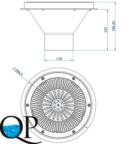 ФОРСУНКА ДОННАЯ РЕГУЛИР., ДЛЯ БЕТ. БАССЕЙНОВ, РЕШЕТКА AISI-304, БЕЛЫЙ ABS-ПЛАСТИК