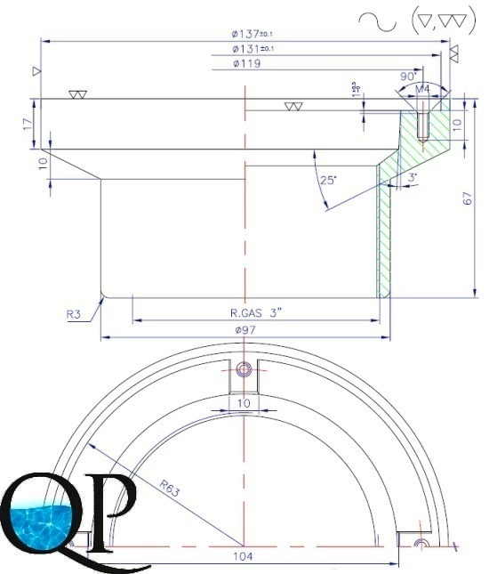 Форсунка регулируемая донная предназначена для установки в бетонные бассейны с плиточной или мозаичной облицовкой.