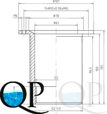 Всасывающая форсунка переливного желоба, Ø 108 мм, длина 100 мм, 2½" н.р., бронза/накл.-NiSn