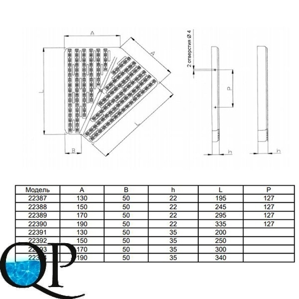 Угловой элемент 45° для переливного канала представлен компанией AstralPool. Он изготовлен из литого белого полипропилена. Элемент устойчив к ультрафиолетовому излучению.