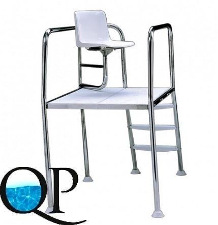 Изготовлено из нержавеющей стали AISI-304 диаметром 43 мм. Ступеньки, платформа, кресло сделаны из стекловолокна. Для увеличения угла обзора кресло и платформа поворачиваются на 90 градусов. Идеально подходит для тренировочных и соревновательных бассейнов. Держатель для зонтика входит в комплект.