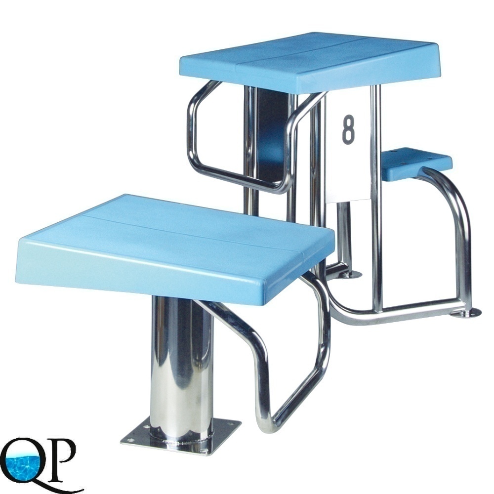 Тумба стартовая с регулируемой платформой из полиэстера и стекловолокна с нескользящим покрытием. Основание модели выполнено из нержавеющей стали.