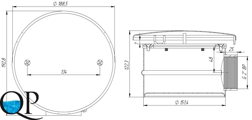 Круглый донный слив, под пленку, предназначен для циркуляции и опорожнения воды в системе водоподготовки. Выполнен из высококачественной нержавеющей стали AISI-304. Антивихревая крышка препятствует образованию воронки.