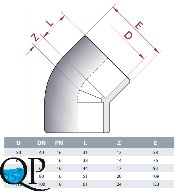 ОТВОД 45° ПВХ "IDRANIA" (КЛЕЕВОЙ) D50, PN16