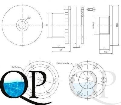 Форсунка подающая стеновая серии AllFit для плёночных бассейнов. Элемент изготавливается из пушечной бронзы.