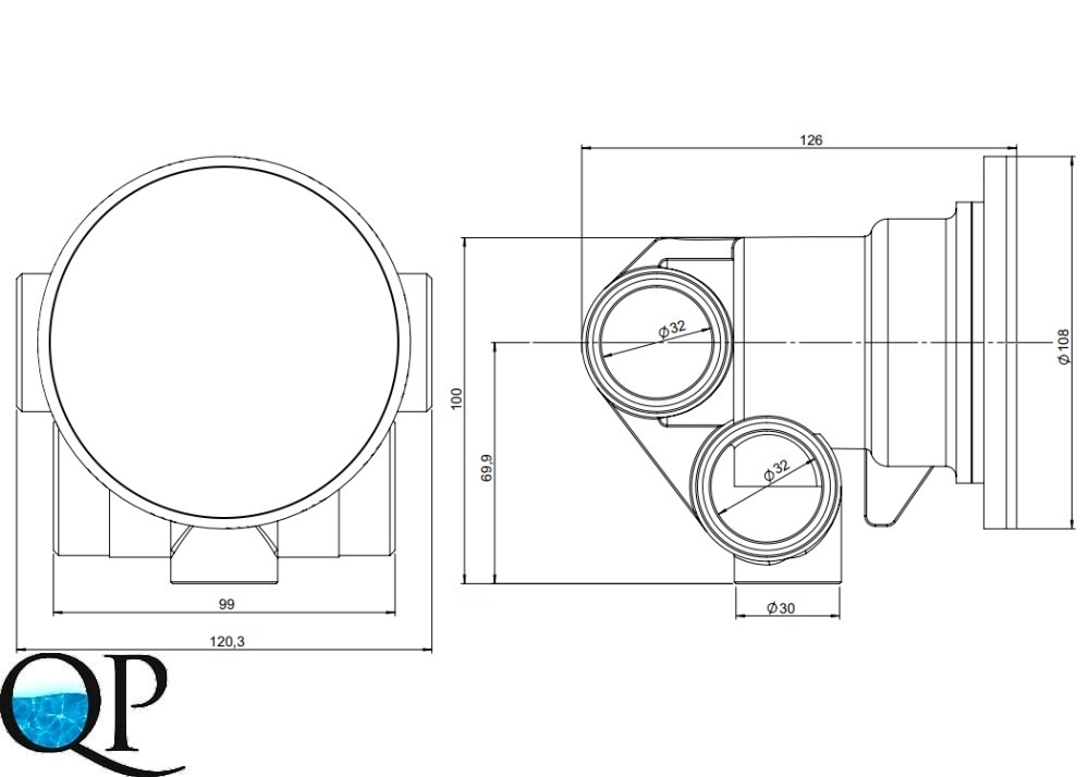 Корпус поворотной форсунки для монтажа в плёночных бассейнах.