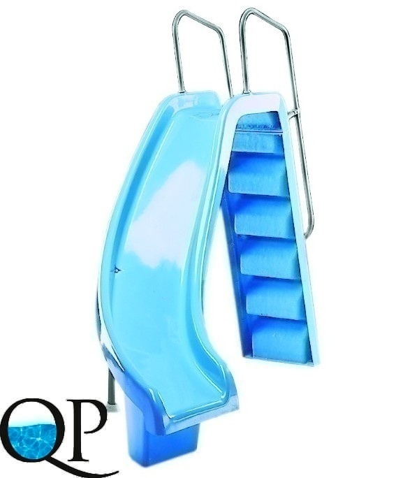 Горка с поворотом влево серии Curved Slide изготовлена из полиэстера и стеклопластика. Поручни модели выполнены из алюминия, покрашенного в белый цвет.
