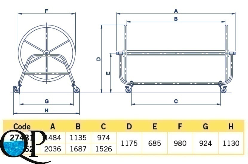 Передвижной ролик для разделительных дорожек изготавливается из нержавеющей стали и оснащён большими колёсами. Для удобства перемещения модель имеет 4 поворотных колеса, два из которых оснащены тормозами.