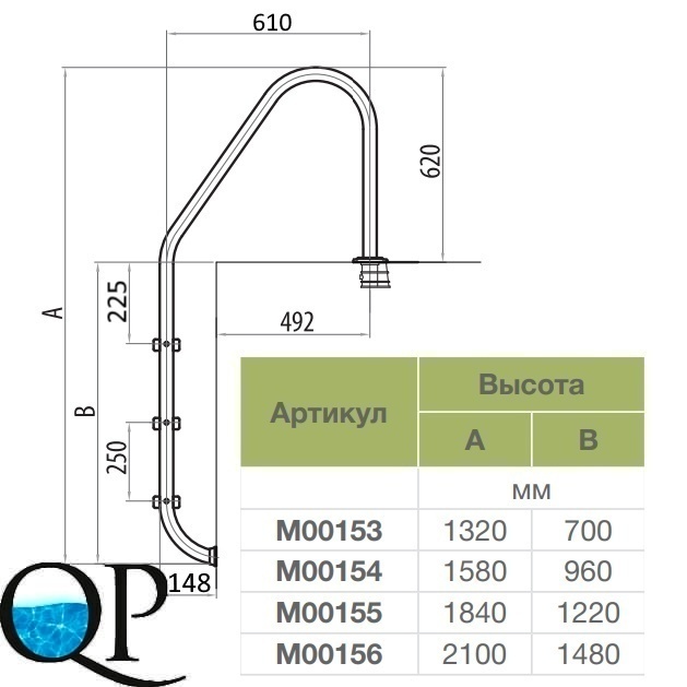 Лестница серии Basic предназначена для использования в стационарных бассейнах. Удобная конструкция модели предотвращает скольжение и тем самым обеспечивает высокую безопасность.