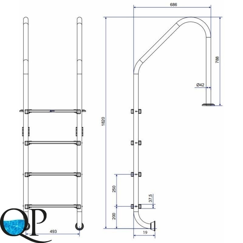 Лестница серии Standard предназначена для удобного и безопасного спуска в бассейн. Поручни и ступени изготовлены из полированной нержавеющей стали марки AISI-304.