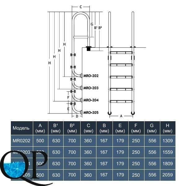 Лестница Aquaviva Muro MU-315 (3 ступ.), усиленная