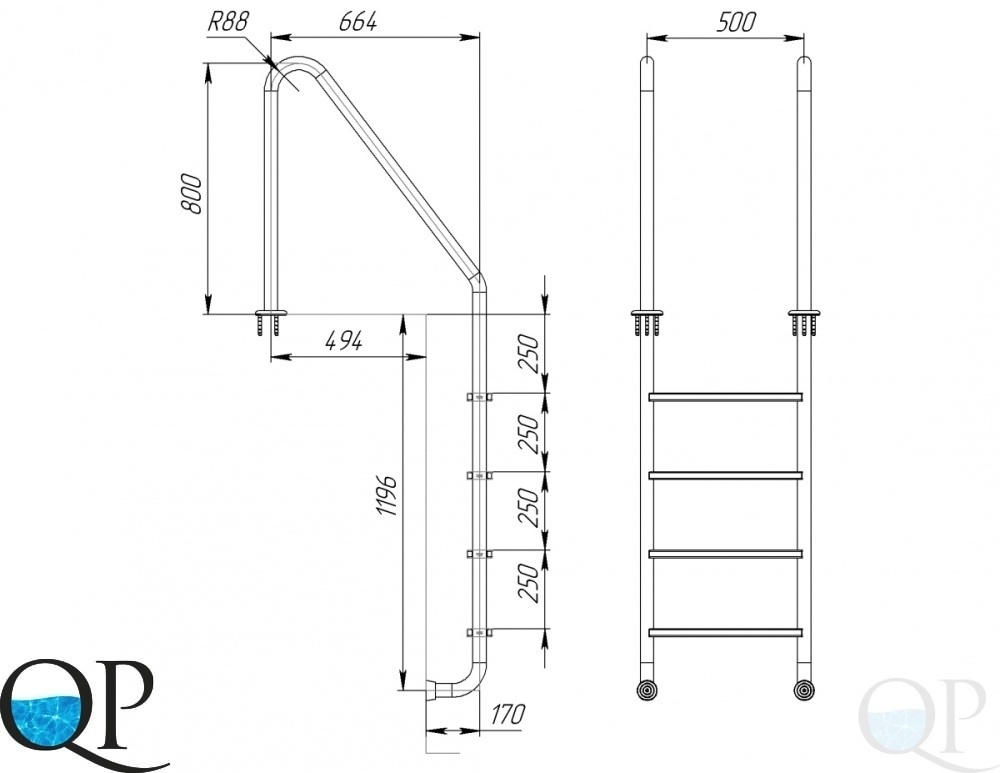 Лестница Аквасектор "Standart" 4 ступени (AISI 316L)