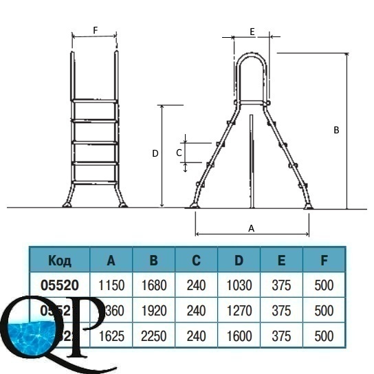 ЛЕСТНИЦА "ABOVE SS" ДЛЯ НАЗЕМН. БАС., ВЫС. 1,2 М, 2 Х 4 СТУП.+ ПЛОЩАДКА