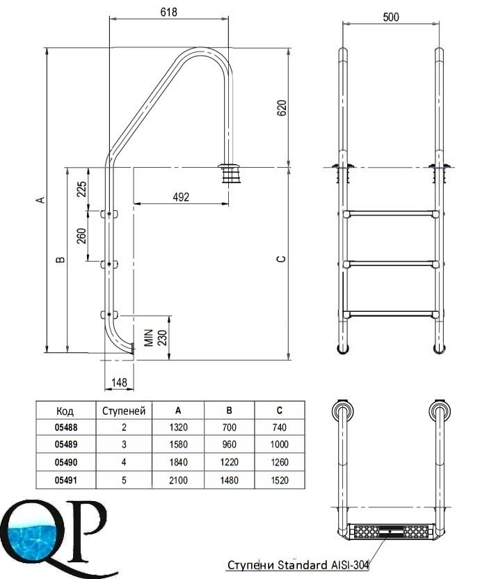 ЛЕСТНИЦА "STANDARD" С 5 СТУП. "STAND.", AISI-304