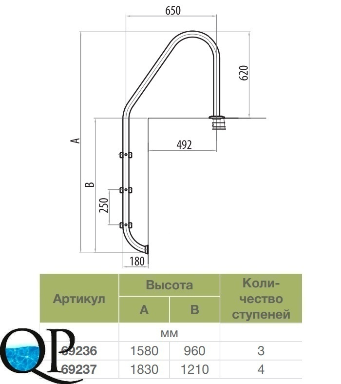 Лестница серии Galaxy предназначена для использования в стационарных бассейнах. Удобная конструкция модели предотвращает скольжение и тем самым обеспечивает высокую безопасность.