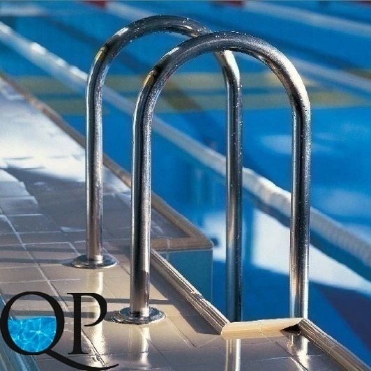 Монтаж лестницы выполняется в верхней части бассейна при помощи болтов из нержавеющей стали и закладного стакана (анкера). Нижняя часть лестницы упирается в стену бассейна резиновыми заглушками. Крепеж не нарушает гидроизоляцию чаши бассейна.