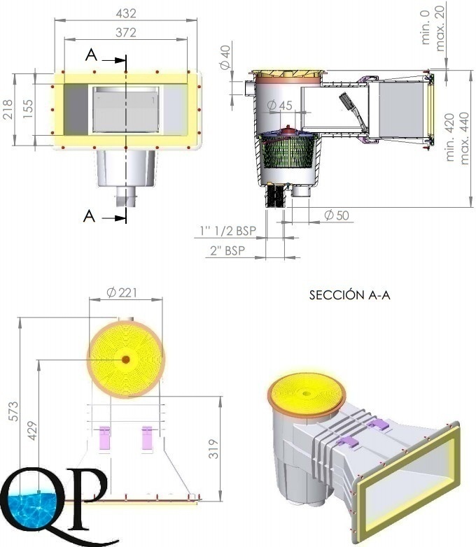 Скиммер с широким раструбом и защитным корпусом для пленочных и сборных бассейнов изготовлен из ABS-пластика с шумопоглощающей откидной створкой и расходорегулирующей пробкой. Все открытые части скиммера устойчивы к ультрафиолетовому излучению.