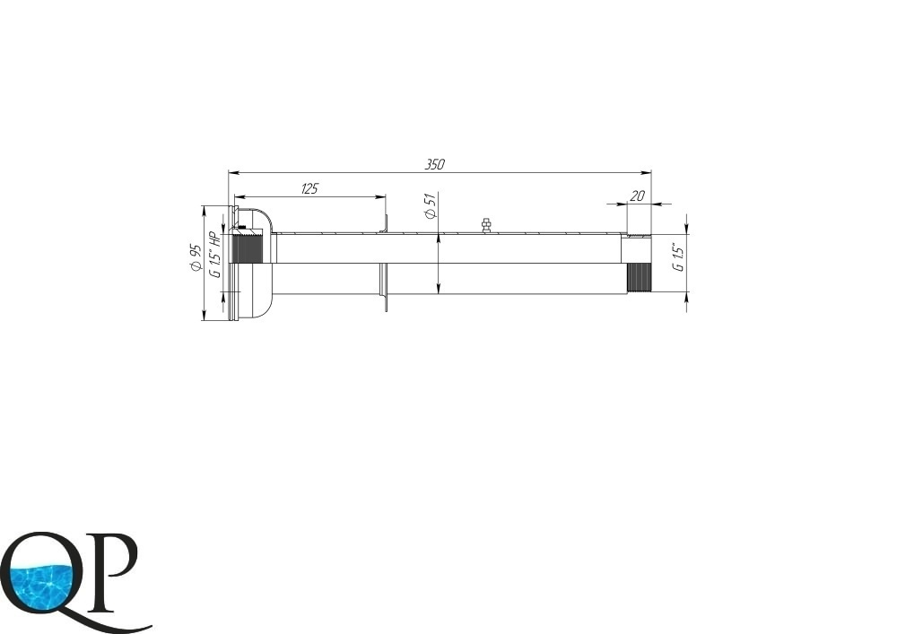 Стеновой проход, изготовленный из высококачественной нержавеющей стали AISI-304. Изделие предназначено для использования в бассейнах, аквапарках и водных аттракционах в качестве оборудования для системы водоподготовки.