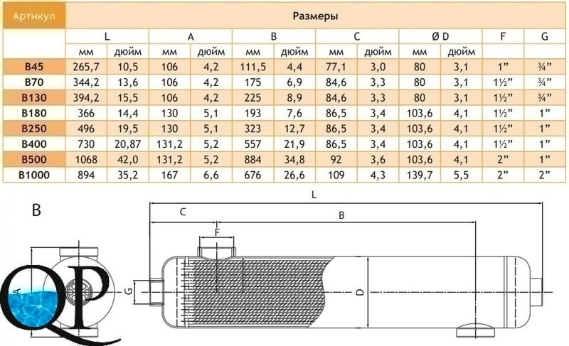 Теплообменник может быть использован для нагрева в бассейнах, СПА и горячих ваннах, масляных радиаторах; для рекуперации тепла сточных вод.