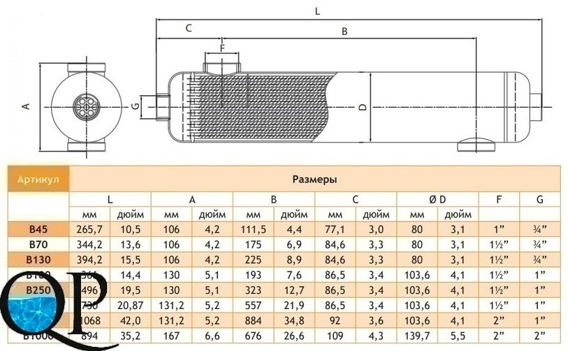 Теплообменник может быть использован для нагрева в бассейнах, СПА и горячих ваннах, масляных радиаторах; для рекуперации тепла сточных вод.