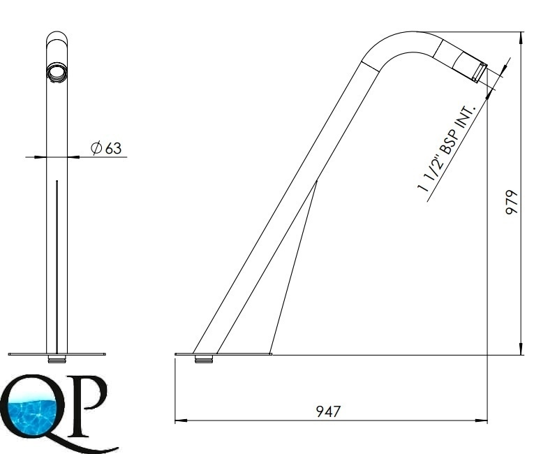 Форсунка равномерного давления для расслабляющего массажа изготовлена из полированной нержавеющей стали марки AISI-316.