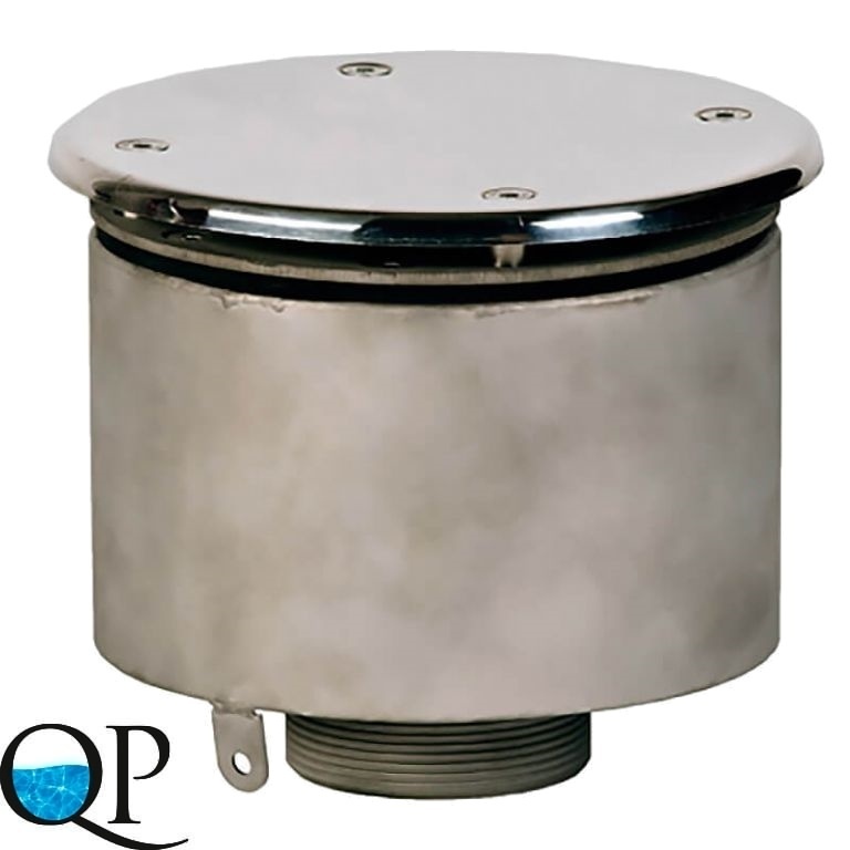Водозабор с антивихревой крышкой осуществляет забор воды в систему гидромассажа или водопада и устанавливается в бассейнах, облицованных плёнкой. Элемент изготовлен из нержавеющей стали.