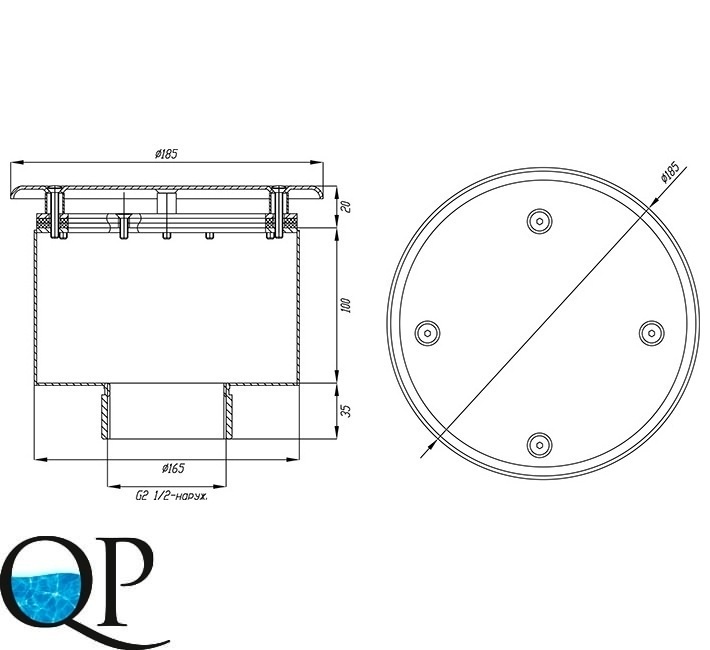 Водозабор с антивихревой крышкой д.165х100 2,5" (наружн.) пленка AISI-316