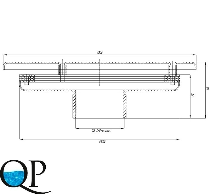 Водозабор с антивихревой крышкой д.250 2,5" (внутр.) плитка