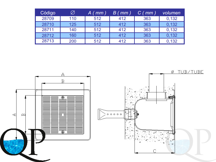 СЛИВ ДОННЫЙ ДЛЯ БЕТ. БАССЕЙНОВ, 160, 512 x 512, СТЕКЛОПЛАСТИК