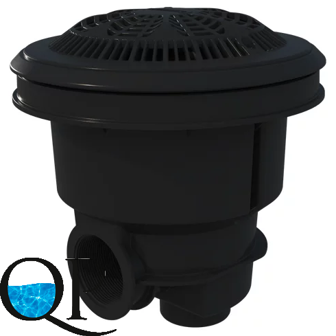 Слив донный, крышка круглая, 245Х245 мм, поток 15 м3/ч, соединение боковое 2", соединение донное 1 1/2”, с антивихревой решеткой и без вставок, цвет антрацит, ABC-пластик, для пленочного бассейна