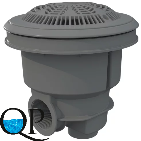 Слив донный, крышка круглая, 245Х245 мм, поток 15 м3/ч, соединение боковое 2", соединение донное 1 1/2”, сантивихревой решеткой и вставками, цвет светло-серый, ABC-пластик, для пленочного бассейна