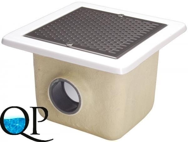 Слив донный изготовлен из полиэстера, усиленного стеклопластиком с отделкой гелькоутом. Материалом решетки выступает нержавеющая сталь AISI-316, а рамка изготовлена из ABS-пластика с защитой от УФ-излучения.