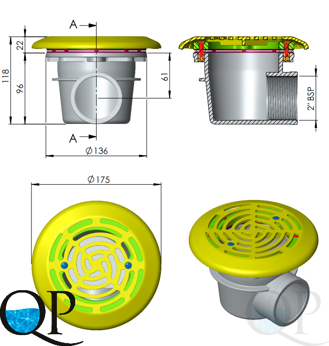 СЛИВ ДОННЫЙ, КРУГЛЫЙ, СОЕДИНЕНИЕ БОКОВОЕ 2 ”, ДЛЯ ПЛЕНОЧНЫХ БАСЕЙНОВ, ПЛАСТИК