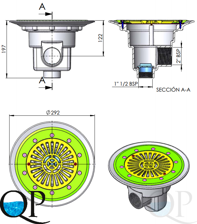 Слив донный с самонарезающими шурупами специально создан для пленочных бассейнов любых объемов, полностью изготовлен из белого ABS-пластика, с прокладками и винтами из нержавеющей стали. Боковые соединения надежно закрываются, если необходимо провести испытания давлением. Донное соединение снабжено пробкой, для подключения гидростатического редукционного вентиля (00277) и дренажной трубы (21581).