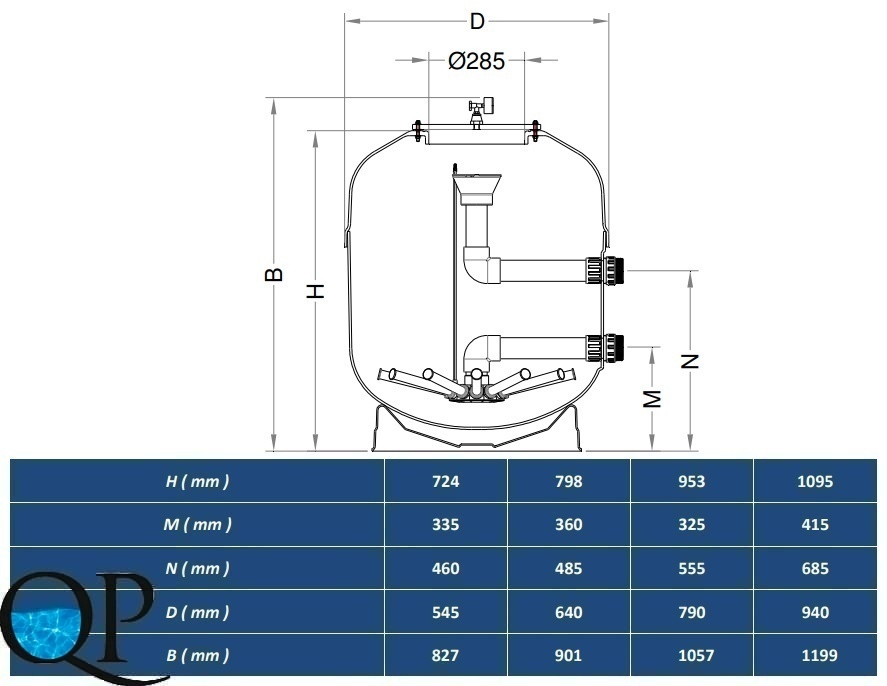 Фильтр ламинированный "Europa Pro" д. 500 мм, 9,5 м3/ч, патр.1 1/2'' мм, 50 м3/ч/м2, раб. давл. 2,5 бар, засыпка 0,39 м, без вентиля, тип подключения, трубчатый, с крышкой из метакрилата