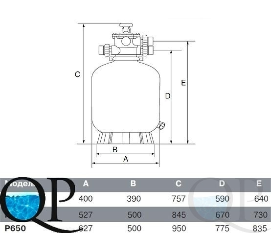 Фильтр д.650мм (верх. подсоед. 40мм) Emaux P650 (Opus)