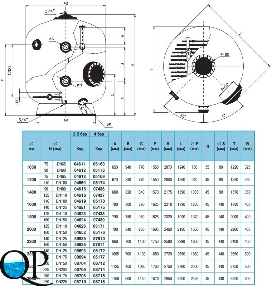 ФИЛЬТР МОТАНЫЙ "OSLO" Д. 1400 ММ,61 М3/Ч, ПАТР.125 ММ , 40 М3/Ч/М2, РАБ. ДАВЛ. 2,5 КГ/СМ3, ЗАСЫПКА 1,2 М, БЕЗ ВЕНТИЛЬНОЙ ГРУППЫ, БОКОВОЕ ПОДКЛЮЧЕНИЕ, ТРУБЧАТЫЙ