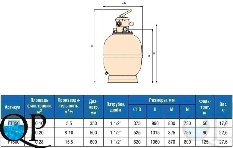 Фильтр "IML" Д600 c верхним вентилем 15,5 м3/ч (FT600) FT-600