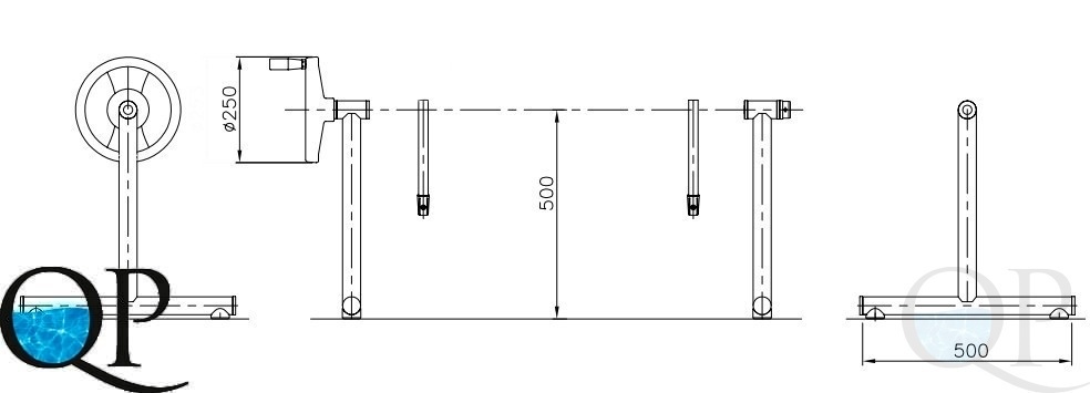Комплект из 2 Т-образных фиксированных опор с поворотным колесом. Изготовлены из нержавеющей стали AISI-304.