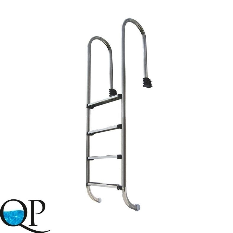 Монтаж лестницы выполняется в верхней части бассейна при помощи болтов из нержавеющей стали и закладного стакана (анкера). Нижняя часть лестницы упирается в стену бассейна резиновыми заглушками. Крепеж не нарушает гидроизоляцию чаши бассейна.