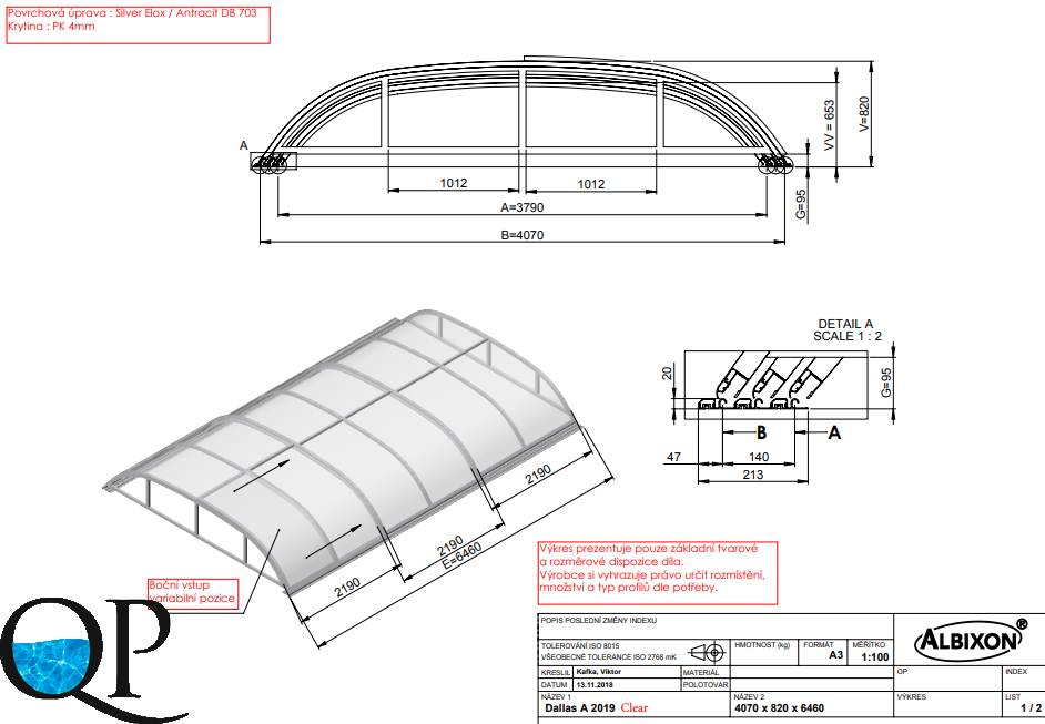 Павильон для бассейна Dallas Clear-A Elox/Антрацит, 407х646х82 см, толщина 4 мм, 3 модуля