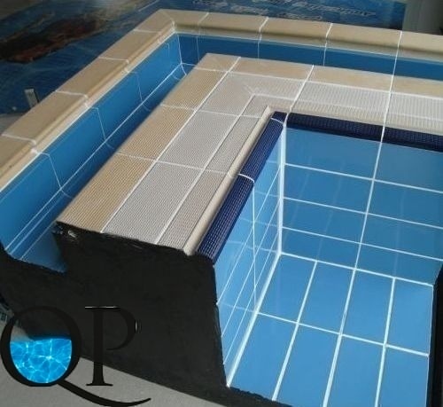 Бордюрная керамическая плитка с поручнем и водостоком - это отличный вариант для отделки бортов бассейна. Благодаря удобному поручню у вас есть возможность браться руками за борт бассейна для отдыха или для тренировок в воде: те, кто занимаются водной гимнастикой точно оценят данный вид отделки. Поверхность отделки ребристая с насечками, поэтому скольжение на поверхности практически исключено. С помощью водостока вода, скопившаяся на плитке, возвращается обратно в бассейн.