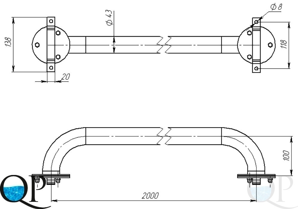 Поручень Аквасектор вдоль борта 2 м (AISI 316L)