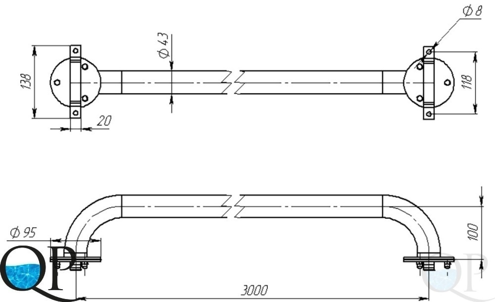 Поручень Аквасектор вдоль борта 3 м (AISI 316L)