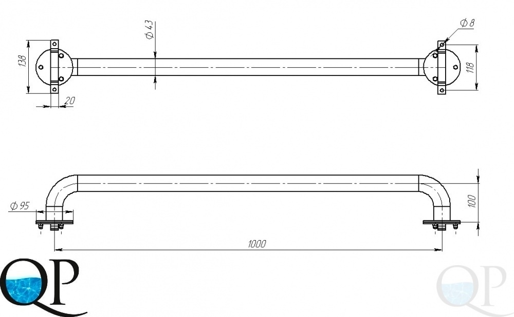 Поручень Аквасектор вдоль борта 1 м (AISI 316L)