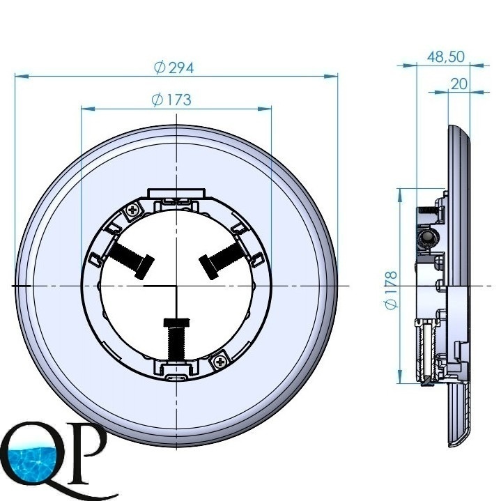 Комплект светильника, состоящий из лампы и лицевой панели, серии LumiPlus FlexiNiche идеально подходит для освещения частных бассейнов, бассейнов с синим или белым фоном, а также освещения высокого уровня.